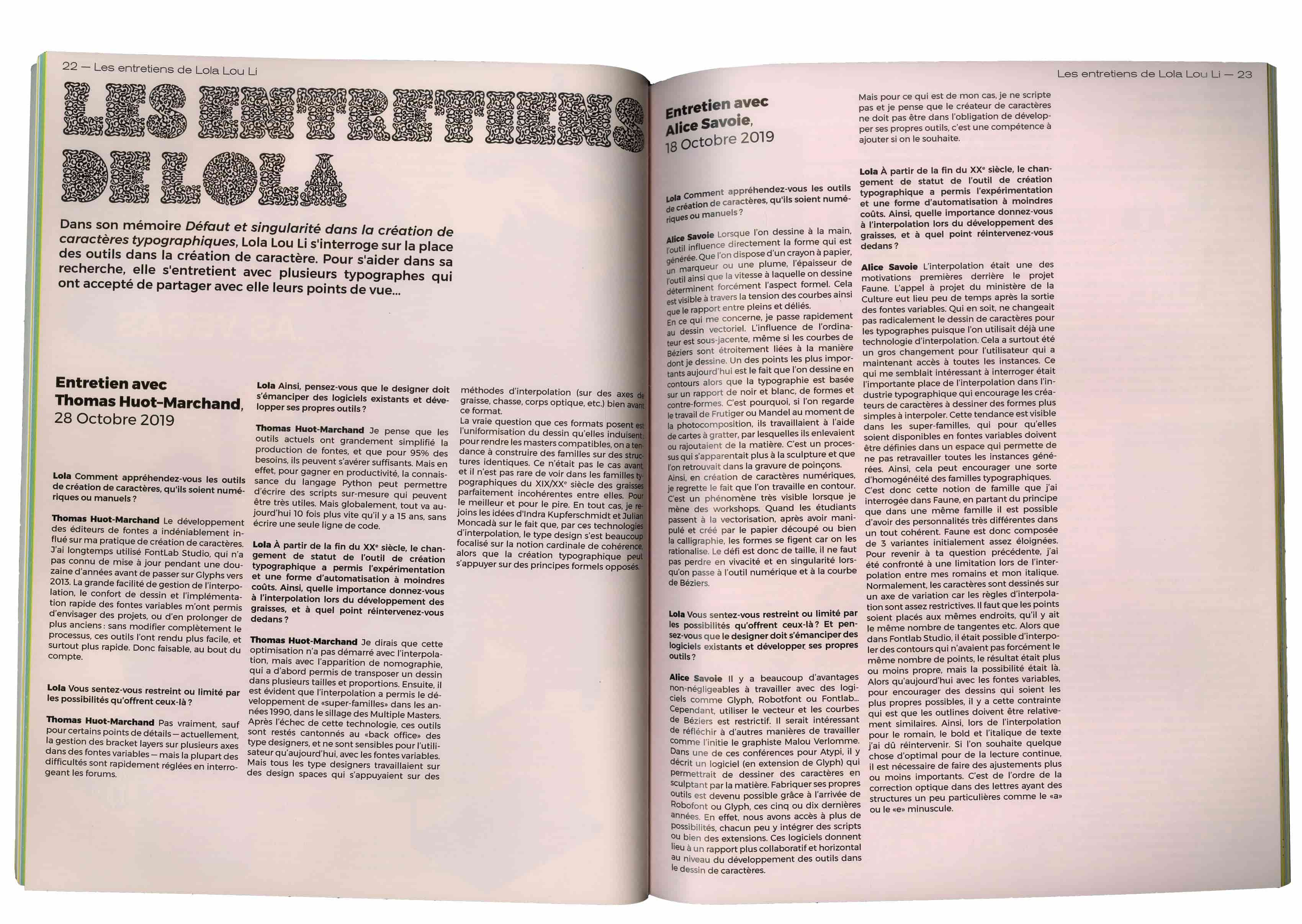Avec plus d'une centaine de mémoire en ligne, memo! propose une riche bibliothèque aux sujets variés. Cette revue, éditée à l’occasion du festival Le Nouveau Printemps, donne la réplique à une sélection d’auteur·ice·s de la plateforme et rend compte du travail mené depuis le lancement de la plateforme en 2021. Il s'agit d'un travail de conception éditoriale et de mise en page, réalisé dans un délais court pour accompagner l'exposition memo! à La Fabrique du Nouveau Printemps en juin 2023. Le magazine était consultable par les visiteurs sur place, et lisible sur la plateforme memo!